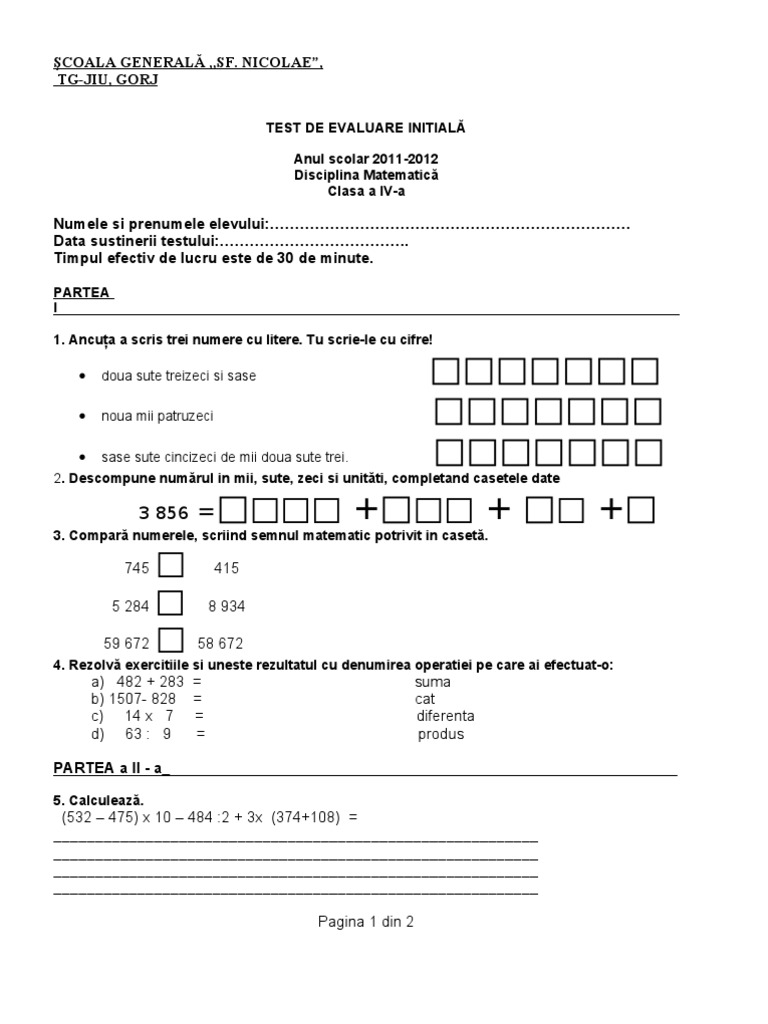 vizitati articolul complet aici : https://zbook.org/evaluare-initiala-chimie-cls-12-model_MTU5Njc3.html Romana, lb franceza, lb italiana, lb germana, lb engleza, istorie testele respective sunt modele cu caracter orientativ atat pt. Fisa de evaluare initiala pentru copiii de clasa i comunicare in limba romana (clr) acest blog este realizat in sprijinul scolarilor. Un test pentru clasa pregătitoare cu cinci itemi.