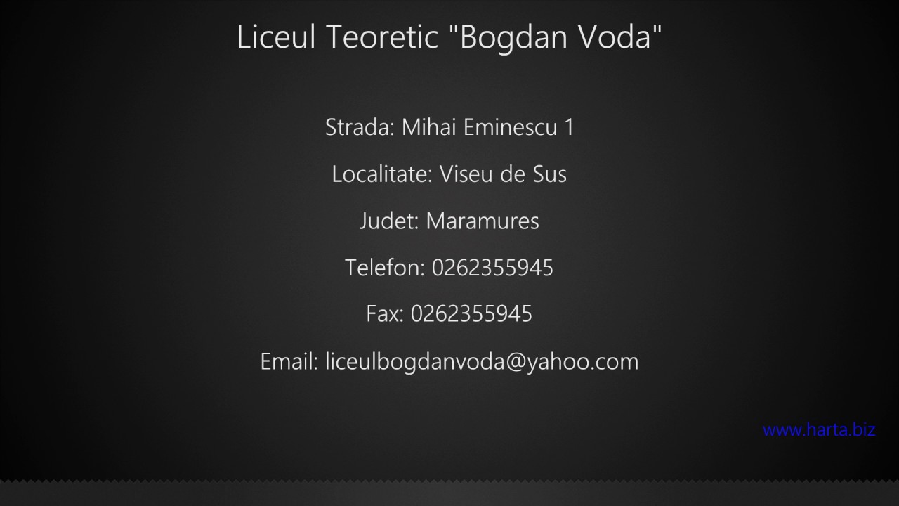 Eminescu, nr 1 viseu de sus maramures tel. Ce vezi acolo pe site, e media din 2016 (sau 2017?). Liceul teoretic bogdan voda viseu de sus.