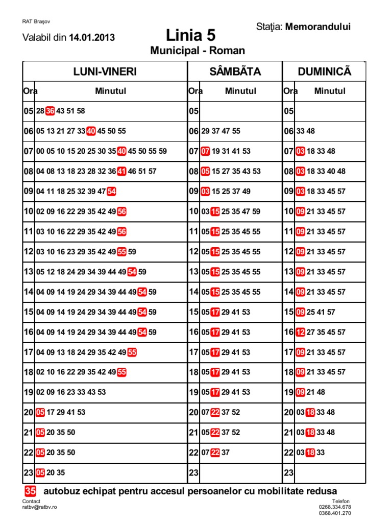 08.00, 13.00, 14.00,16.00 linia 22: Orarul de circulatie poate fi influentat de conditiile de trafic Orarul de circulatie poate fi influentat de conditiile de trafic